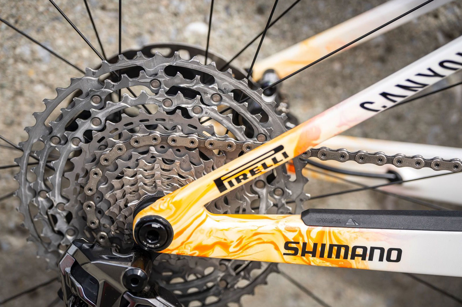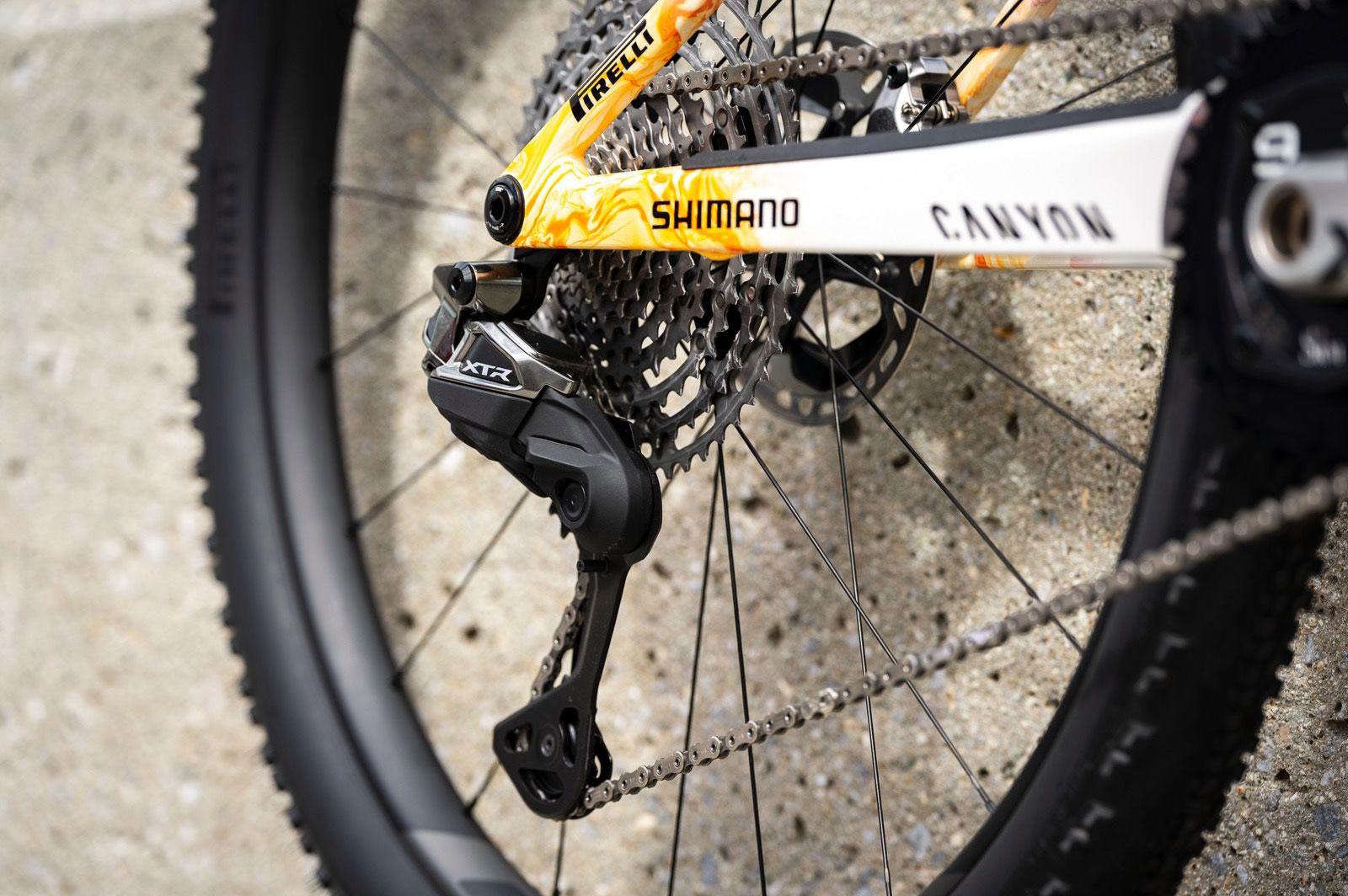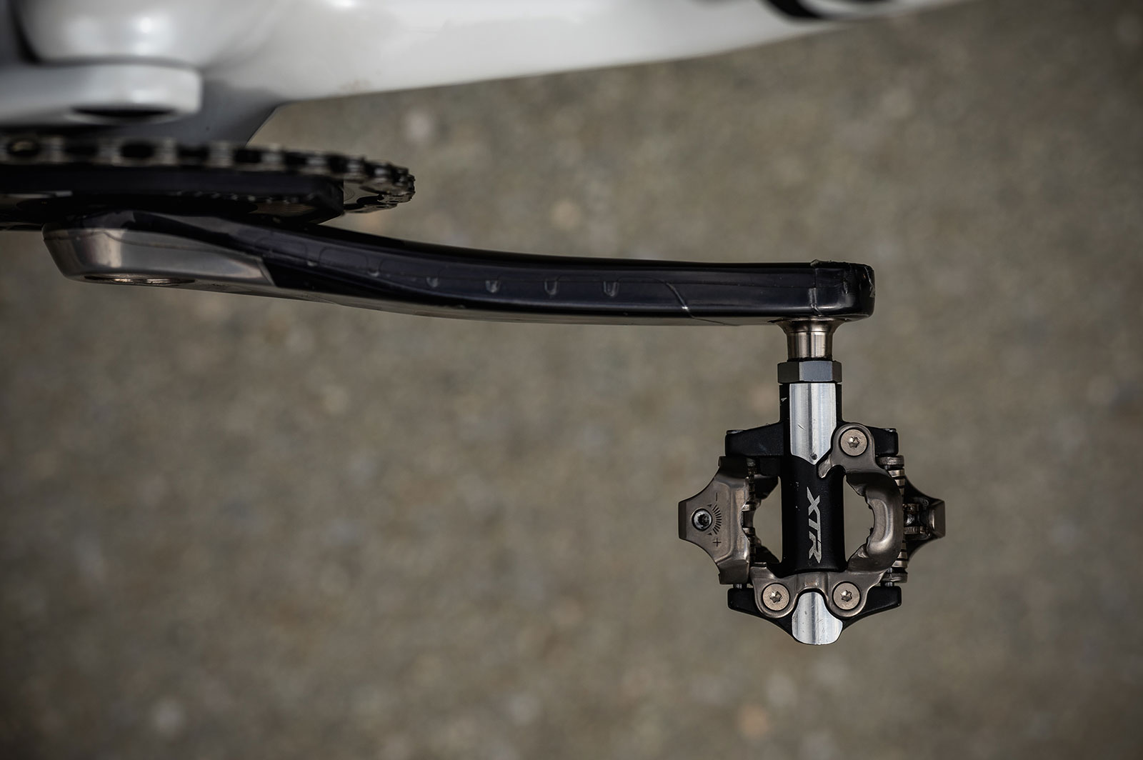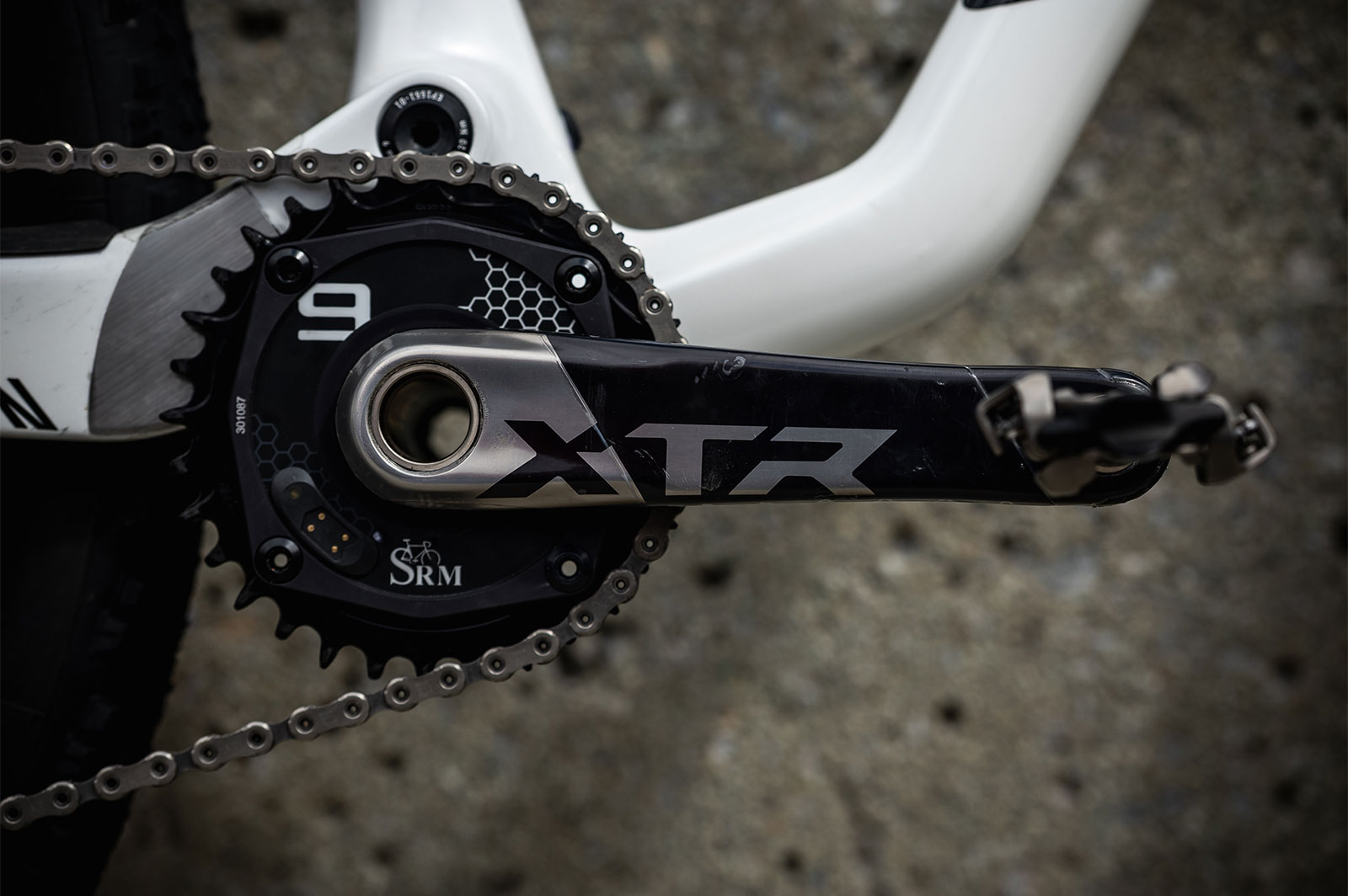 Die crank die overigens niet helemaal origineel. Daar kiest hij voor een SRM 9 powermeter. Dezelfde keuzes zijn gemaakt voor/door Puck Pieterse. Ook de remhendels zijn de lichtere hendels uit de XTR M9100-serie en de crank is uitgerust met een SRM 9 powermeter.