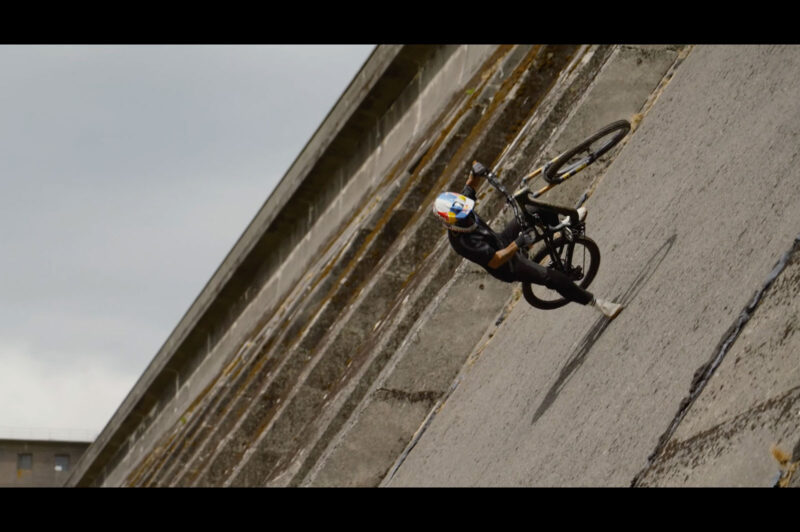 Het heeft wel weg van een uit de kluiten gewassen BMX park, zo’n stuwdam. Kriss Kyle laat er z’n kunsten zien. En dat gaat prima, want er zijn veel rondingen zoals bij een BMX park. Kriss rijdt op een Specialized Stumpjumper 15 die trouwens een stuk meer veerweg heeft dan een BMX fiets. Er wordt nog wel even bijvermeld dat het hier gaat om een professionele rijder, dus probeer het niet na te doen als je ergens zo’n stuwdam tegenkomt.