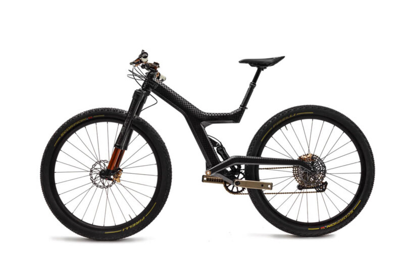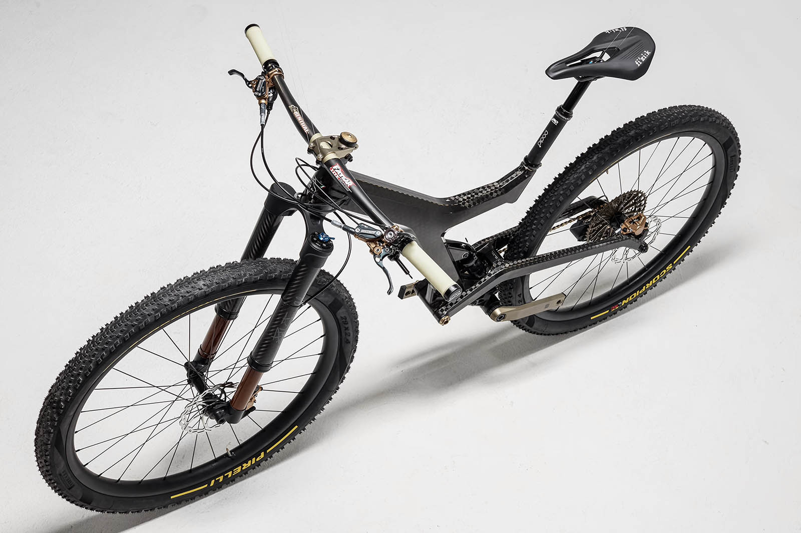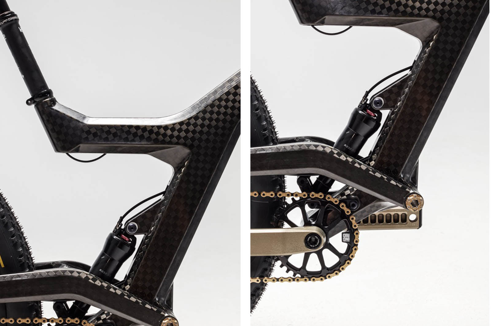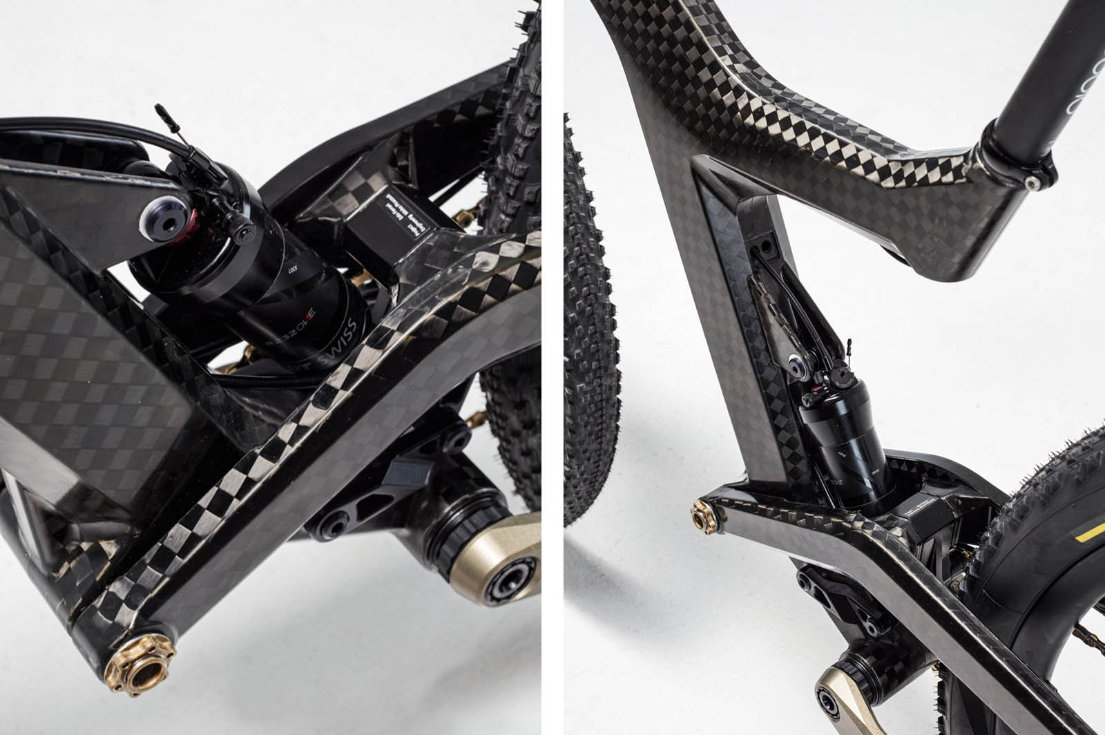 Wat nou precies de voor- en nadelen zijn van het Y-frame wordt me niet helemaal duidelijk. Bij El Camös zeggen ze dat het gewicht daardoor omlaag kan en het reactievermogen bergop en de stabiliteit in de afdaling verbetert. Ook zie je dat er meer ruimte rondom het achterwiel ontstaat, waardoor je meer ruimte hebt voor de achterbrug en de trapas. Het frame kan volgens ontwerper Edoardo Ferrari zo de stijfheid, de massa-centralisatie en het functioneel design maximaliseren. En anno 2026 maak je zo’n frame natuurlijk van carbon, dat volledig in Italië wordt gemaakt door Advanced Composites Solutions.