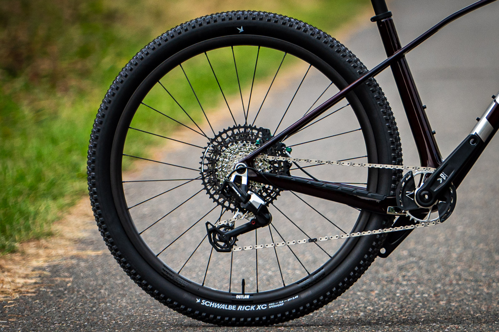 De zijwaartse stijfheid is prima, maar je merkt dat de set meer comfort geeft als je over hobbels rijdt. Maar dat is juist fijn. De directheid en wendbaarheid zijn in juiste balans met het comfort. Eigenlijk ook ideaal in de situatie waarin ik ze gebruik. In ongedwongen ritjes vangen ze best goed het stuiteren van veel impacts op, maar wanneer ik meedoe aan een wedstrijd om deze bike te testen, blijken ze ook agressief genoeg en geven ze voldoende respons om gericht grip te houden terwijl ik de limiet opzoek. Het bleek voldoende voor een derde podiumplek.