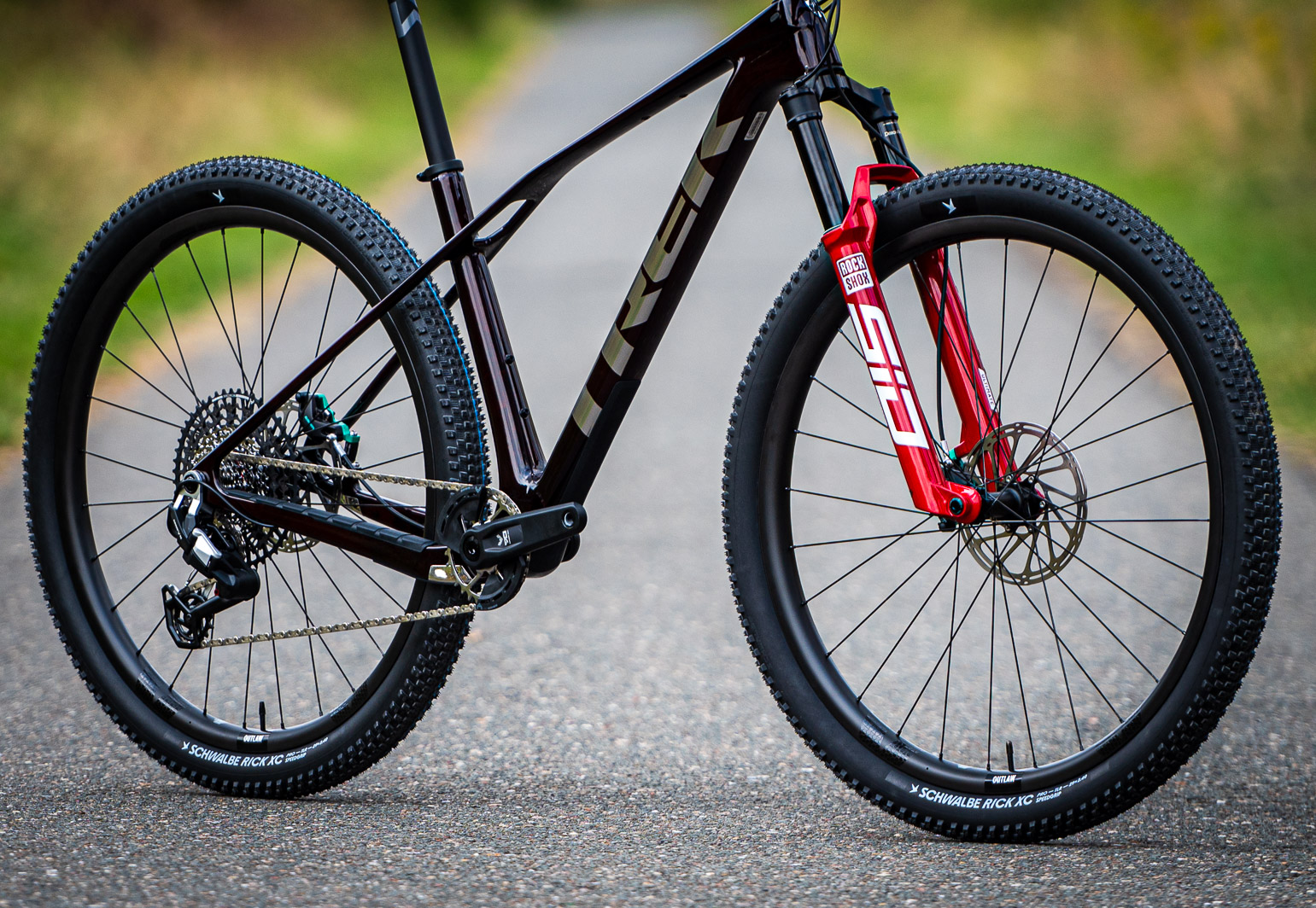 Deze set heb ik getest in de Trek Procaliber die we zelf opbouwden met allemaal verschillende onderdelen. En daar passen de wielen eigenlijk perfect in. Het is qua onderdelen namelijk niet het topsegment, maar echt het middensegment. Als ik een eerste testrit maak, valt het ‘extra’ gewicht me eigenlijk niet echt op. Wat vooral opvalt zijn de andere eigenschappen. De manier waarop de 2,4 inch brede band in de 30 mm velg valt, geeft meteen een stabiel gevoel op onverharde ondergronden.