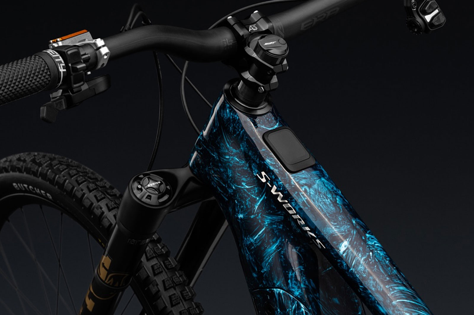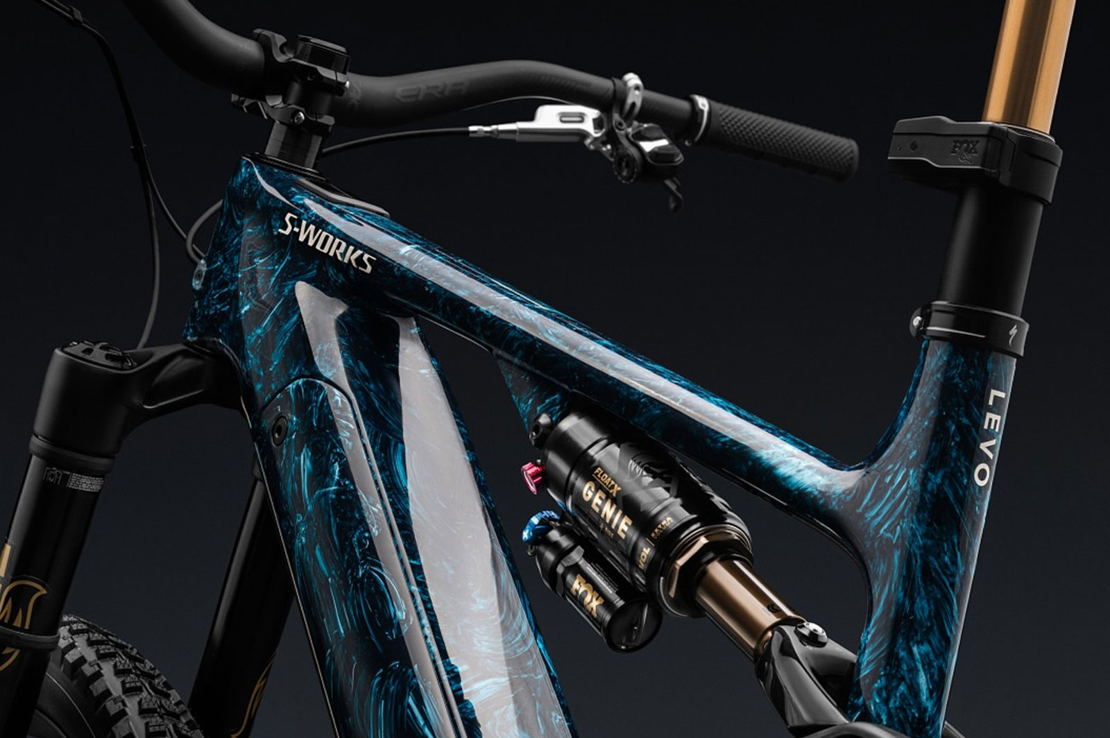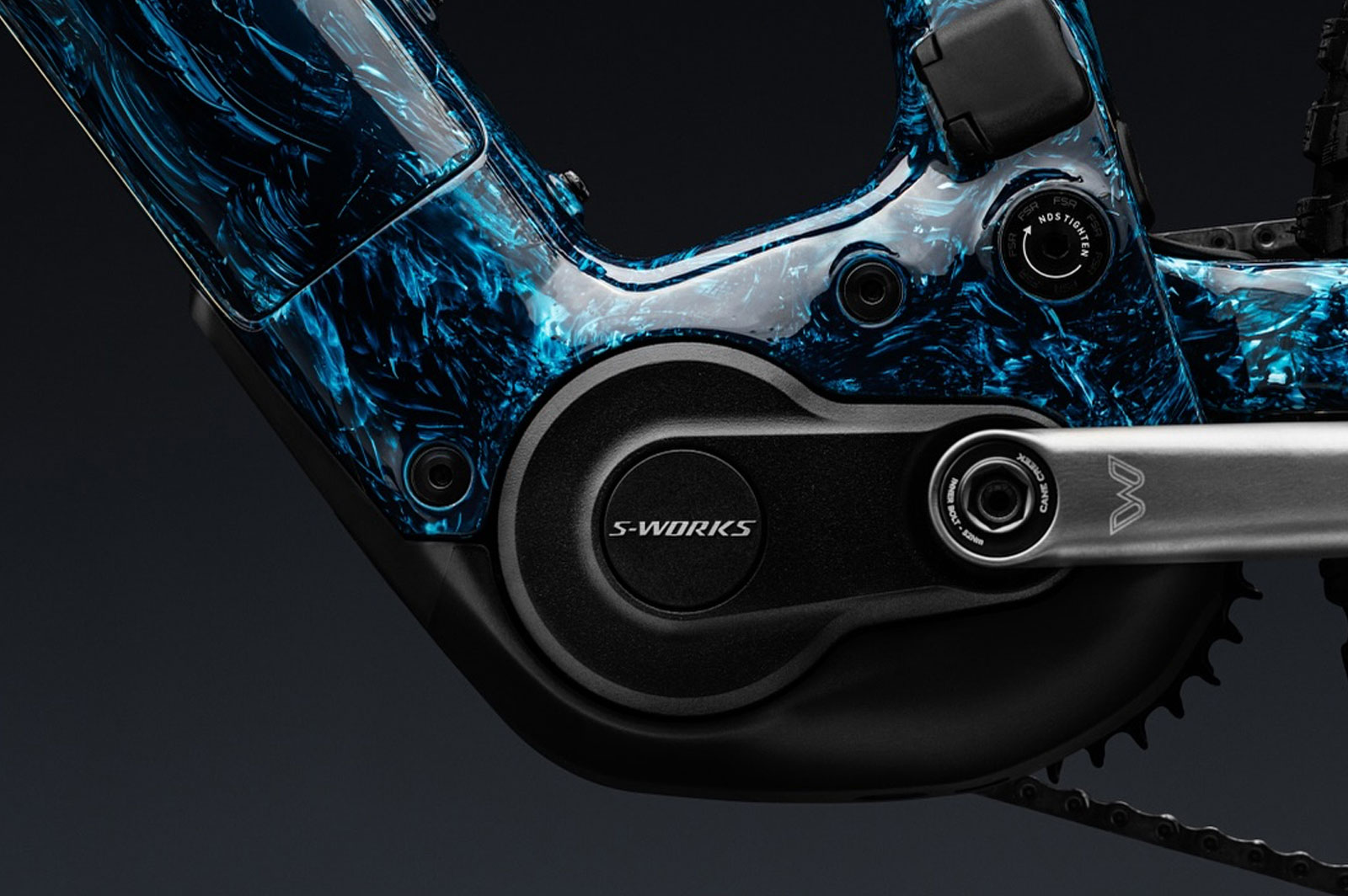 De basis is hetzelfde als de S-Works Turbo Levo 4 die al bijzonder is. Aanpassingen zijn gedaan aan de afmontage maar ook qua design. De kleur heet Astral Blue maar van een afstandje is het een soort van Tesla transformator effect. Van dichtbij lijken het weer meer de golven van de zee. Anyhow,… de motor is de bekende S-Works Specialized 3.1 met 111Nm en 720 watt. De accu heeft een capaciteit van 840Wh.
